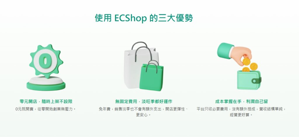 如果你正在煩惱該怎麼避開這些地雷,有一個專為新手打造、能同時解決成本與技術問題的方案:由金流龍頭 綠界科技 推出的平台 ECShop!