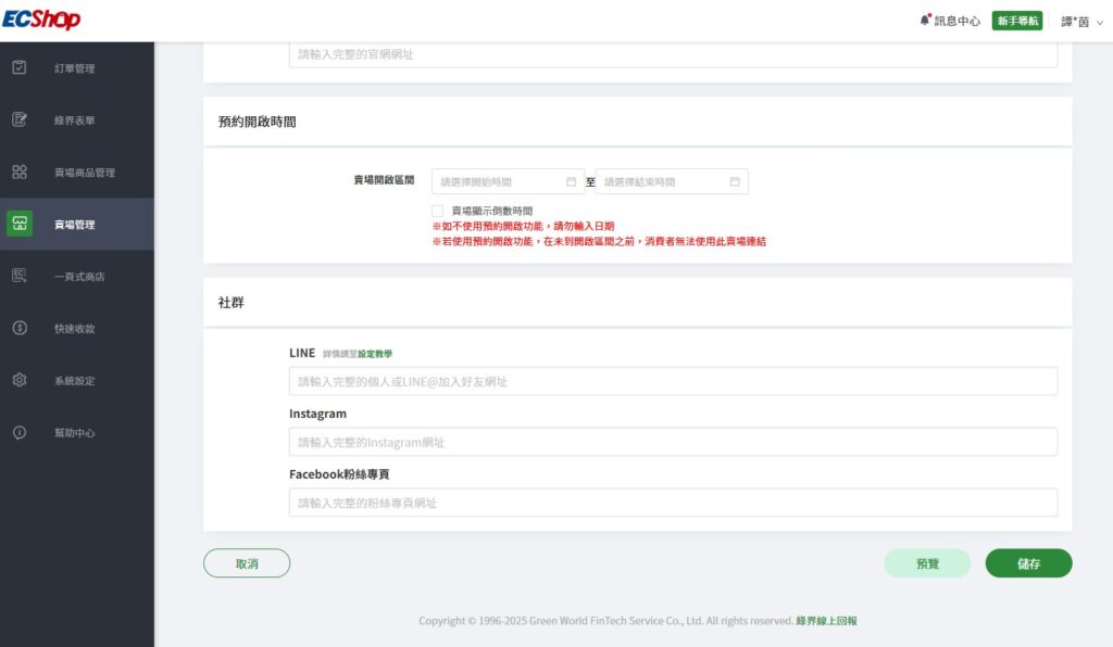 如有經營社群,也可在這些欄位填寫社群帳號連結,完成填寫點及保存。