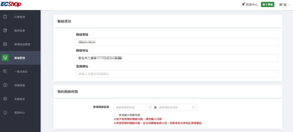 ECShop 聯絡資訊設定 (圖片來源 : ECShop)