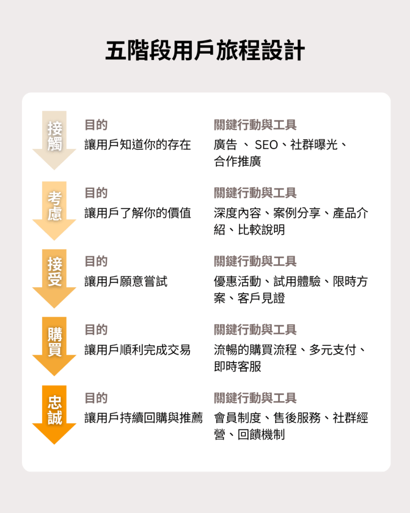 ✅ 你有設計完整的五階段用戶旅程嗎?
