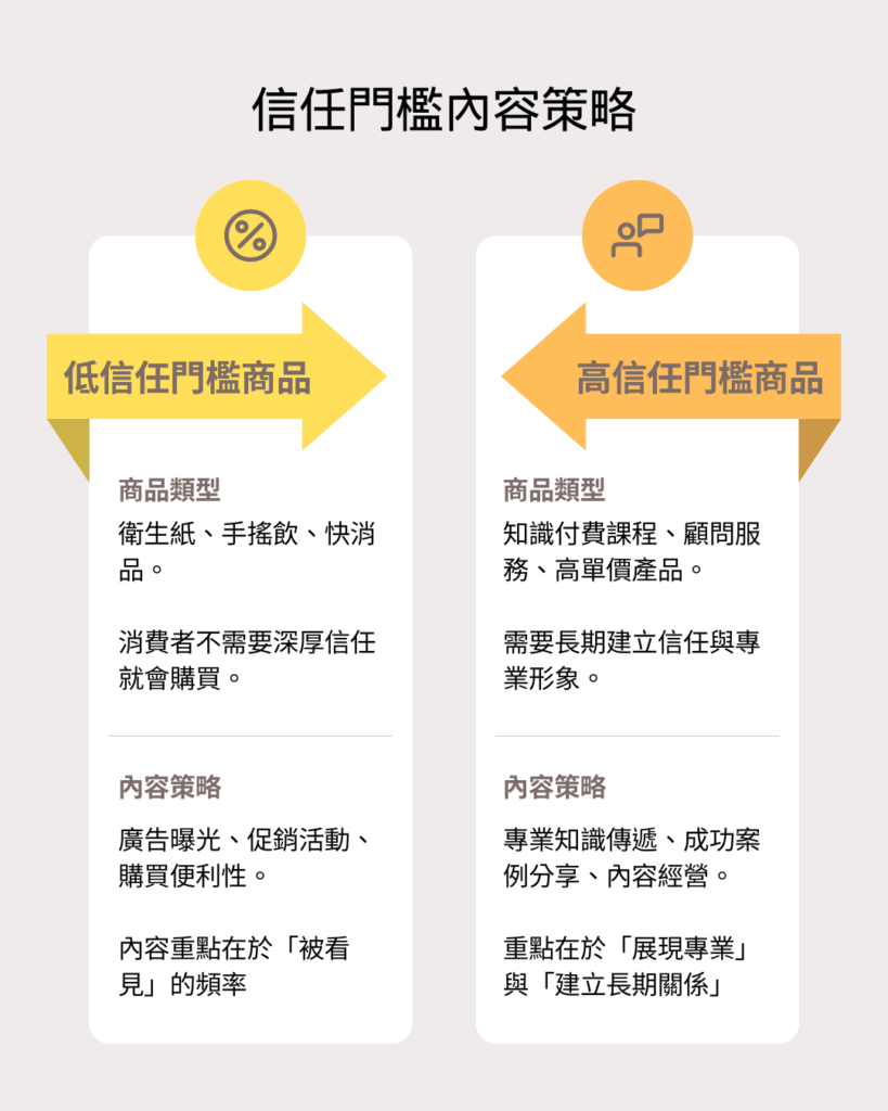 根據信任門檻:低信任與高單價商品的內容策略差異